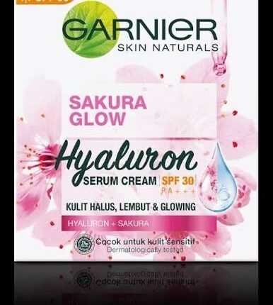 Garnier Sakura Glow Hyaluron Serum Cream UV is a fast-absorbing facial serum and moisturizer that uses a combination of hyaluronic acid