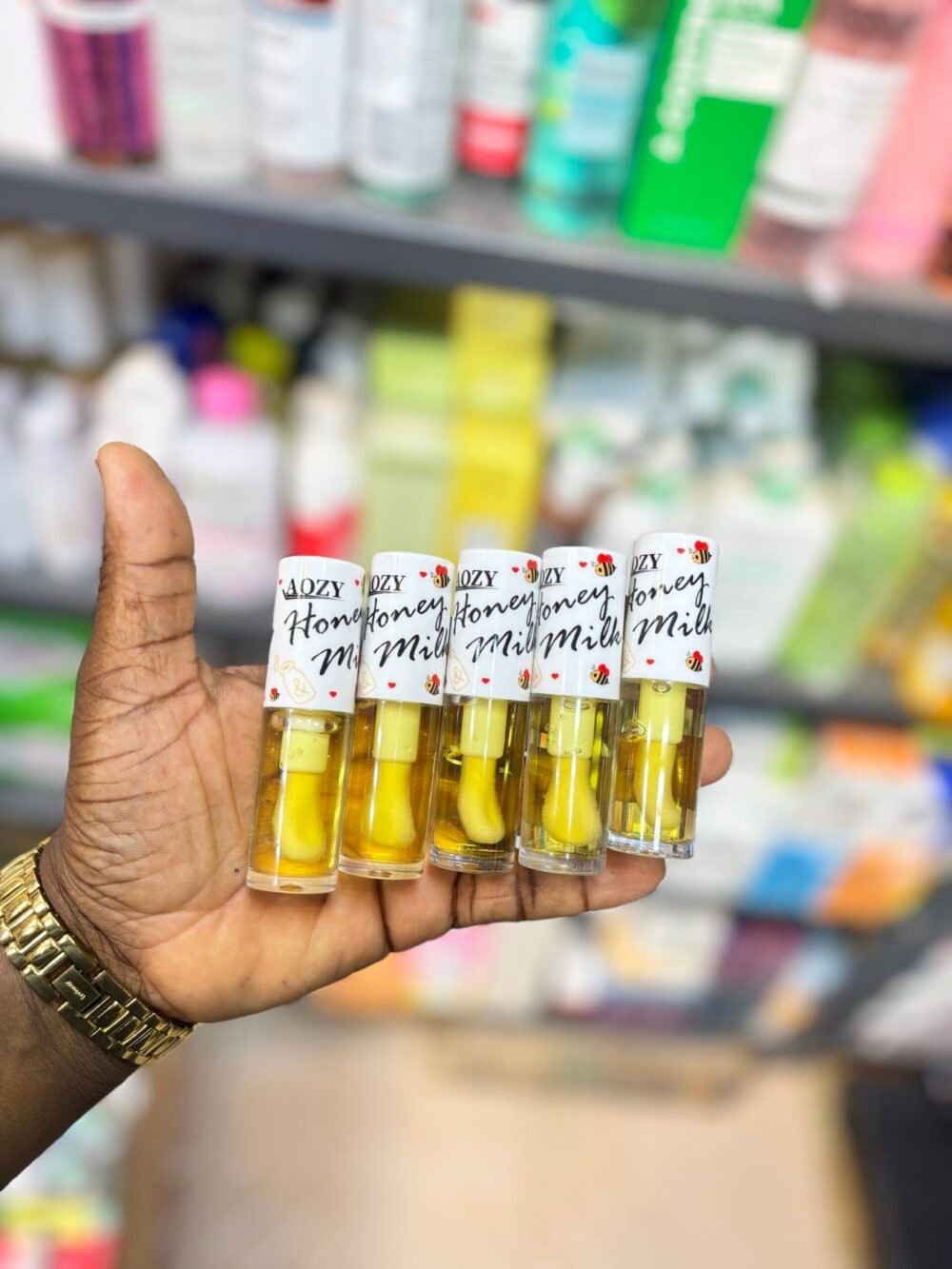 AOZY Honey & Milk Lip Oil. This product is a Korean lip oil designed to nourish and moisturize dry and damaged lips.  Key Ingredients: It is enriched with honey extract and milk protein extract, which form a hydrating layer on the lips, making them healthy and smooth. Vitamin E acetate is also included to protect the lips.  Benefits: It provides long-lasting moisture, deeply hydrates, and promotes supple and resilient lips.  Texture and Scent: The oil formula is non-greasy and glides on smoothly without a sticky feeling. It has a soft milk scent.  Usage: It can be used alone for a natural, soft look or as a top coat over lip tint for a glossy effect. Best Skincare Store in Lagos