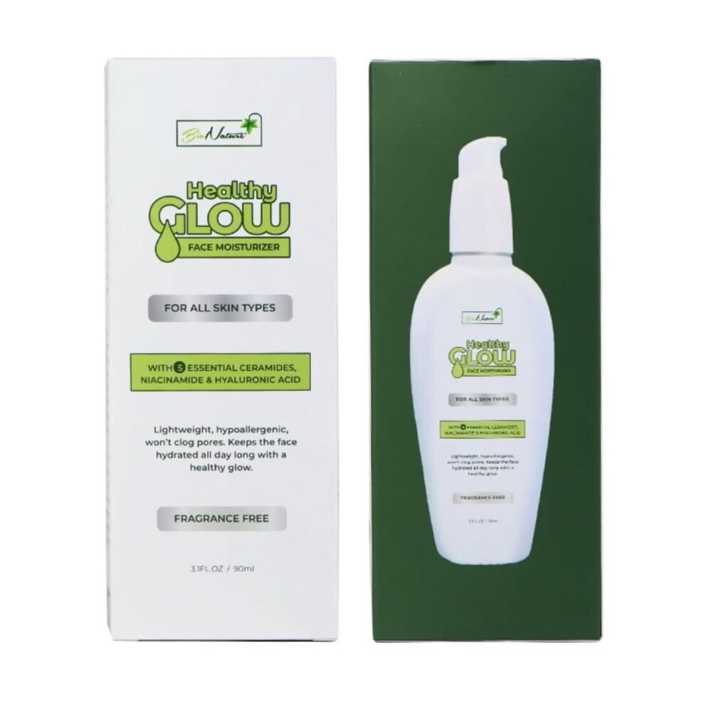 FOR ALL SKIN TYPES WITH 5 ESSENTIAL CERAMIDES, NIACINAMIDE & HYALURONIC ACID Lightweight, hypoallergenic, won’t clog pores. Keeps the face hydrated all day long with a healthy glow. FRAGRANCE FREE Bionature healthy glow face moisturizer is a hydrating facial lotion that absorbs quickly without leaving a greasy finish. It is suitable for all skin types, even sensitive skin. It provides up to 12 hours of hydration. Made with added vitamins, five essential ceramides and other skin-loving ingredients. This moisturizer contains no dyes, artificial perfume or harsh chemicals that can upset the skin. It is hypoallergenic & non-comedogenic, so it won’t clog pores. It restores the protective skin barrier while giving a healthy glow all day long