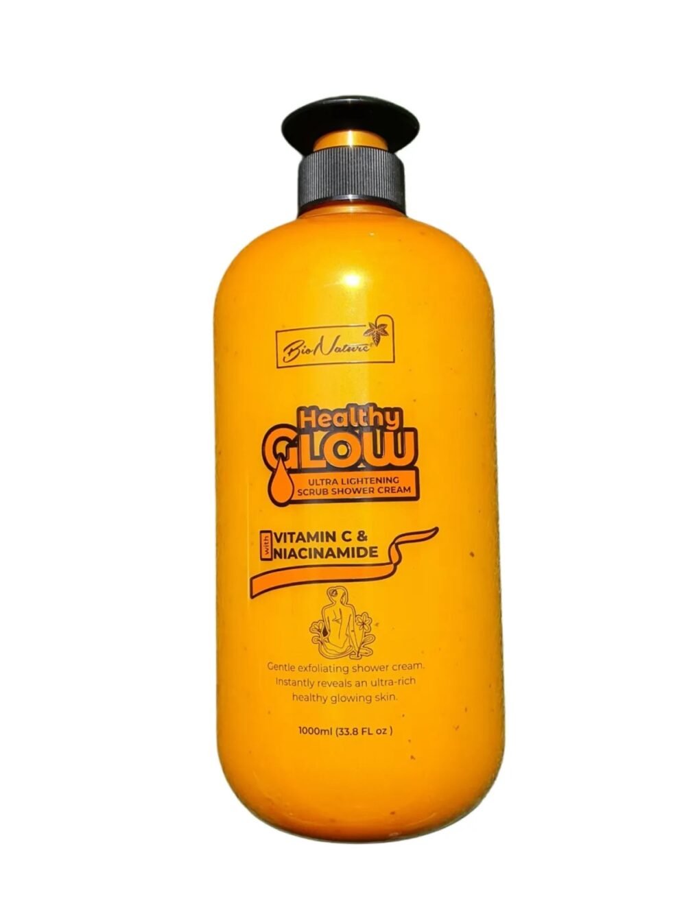 Bionature healthy glow pro-lightening scrub shower cream contains Alpha Arbutin & Kojic Acid, it provides a lasting moisturization for the skin, leaving it feeling silky smooth, tender with a luxurious lavish healthy glow. The relaxing scent leaves you with a lighter mood after each shower. Usage – Pump an adequate amount onto your bathing sponge or your palm, lather with water to produce a rich foam ans apply all over your body. Rinse off with water. Enjoy the feeling and instant glow on your skin.