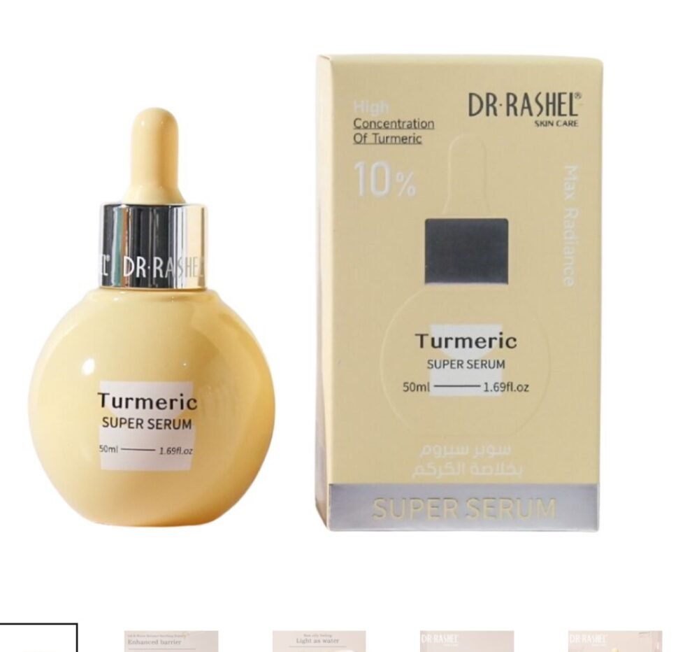Light and creamy texture Reduces swelling and redness Diminishes the appearance of wrinkles Enhances skin barrier Blocks dark spots Promotes radiant skin Our Turmeric super serum combines the potent benefits of curcuma longa extract, known for its rich antioxidant and anti-inflammatory properties. Curcuma Longa extract helps to protect the skin against environmental stressors, reducing the appearance of wrinkles and fine lines, while promoting a more youthful and radiant complexion. Ingredients:?Aqua ,butylene glycol, ascorbic acid, sodium hydroxide,hydroxyacetophenone,1-2 haxanediol, sorbitol, niacinamide ,peg-40 hydrogenated castor oil, sodium benzoade. (Sweet almond )oil aminomethyi propanol. Results:?Power of antioxidant properties. Fade dark spots & rejuvenates your skin. Direction:? Used on cleansed skin, Distribute 3-4 drops on the skin of the face and neck, starting from the center of the face and working your way out, and massage? gently until fully absorbed, used every morning and evening alone or before your moisturizer.