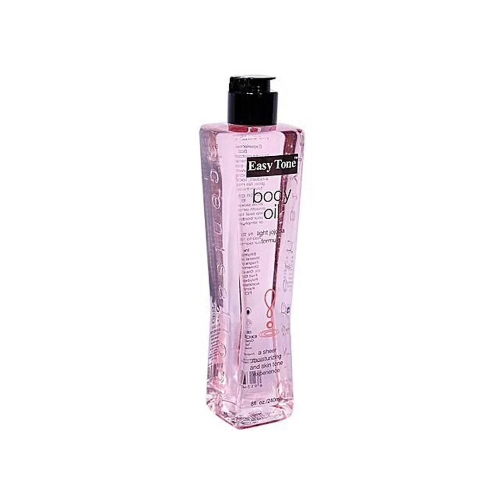 Easy Tone Body Oil is a lightweight, sheer jojoba oil that moisturizes and heals dry skin, leaving it feeling soft, smooth, and radiant with a healthy glow. The formula is designed to be quickly absorbed, and it is suitable for all skin types.