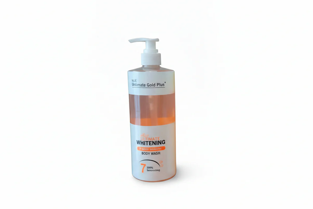 Ultimate Gold Plus Strong Whitening Orange Vitamin C Body Wash is a refreshing body cleanser enriched with Vitamin C and orange extract to help brighten dull skin and promote a more even complexion. The gentle foaming formula removes dirt, oil, and impurities while nourishing the skin with antioxidants. With regular use, it helps improve skin radiance, leaving the body feeling soft, smooth, and revitalized. The citrus-based formula provides a fresh orange fragrance that keeps the skin smelling clean and energized after every shower. It is suitable for daily use and designed for most skin types.