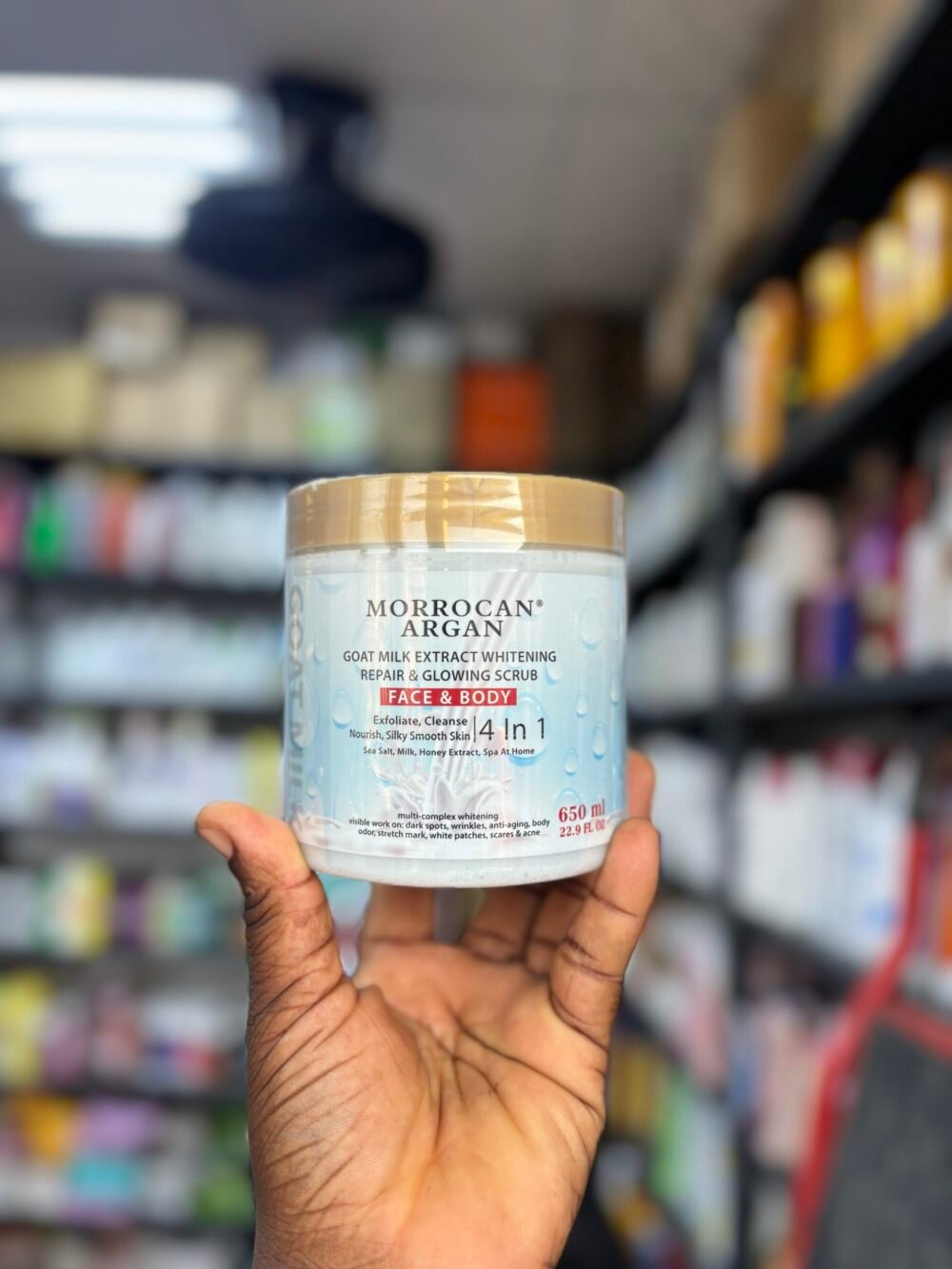 Morrocan argan goat milk extract whitening repair & glowing scrub 650ml