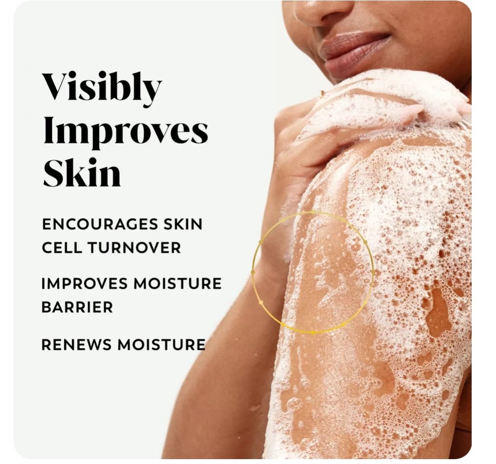 Cleanse, exfoliate, and hydrate your skin with the new Olay Bump Erasing Body Wash. Enhanced with AHA Serum complex, this body wash is the perfect complement to your skincare. Olay Bump Erasing Body Wash not only deeply cleanses and moisturizes your skin, but it also functions as an exfoliating body wash that smooths out rough and bumpy texture, transforming every shower into a luscious skincare experience.