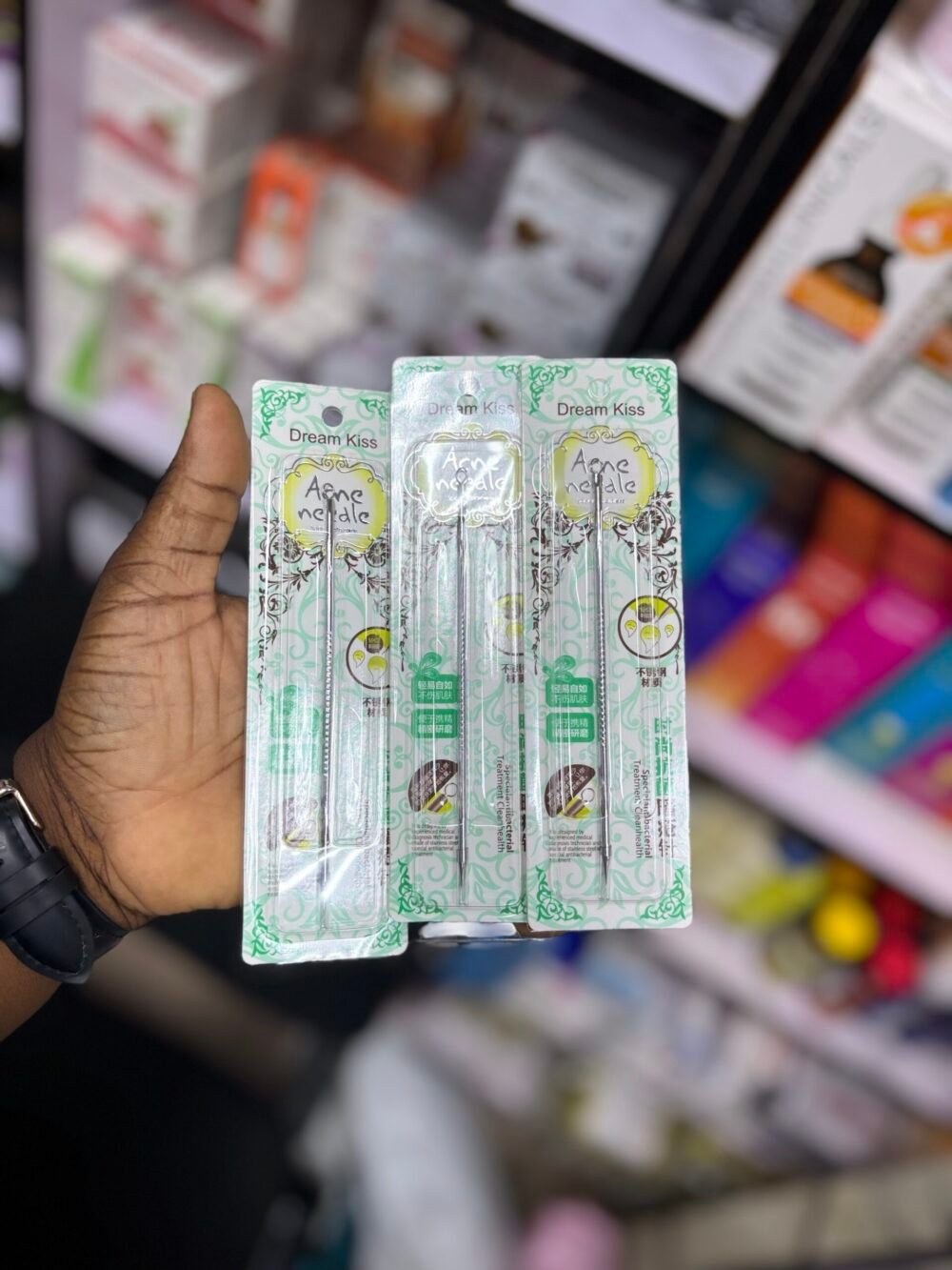Dream Kiss Acne Needle Pimples Extractor is a professional skincare tool designed to safely and effectively remove blackheads, whiteheads, and pimples. Made with durable, skin-safe stainless steel, it provides precise control to extract impurities without causing unnecessary irritation or scarring. Compact and easy to use, it’s perfect for maintaining clear, smooth skin at home or on the go. A must-have tool for hygienic and effective blemish care. where you can buy the best skin care in lagos state