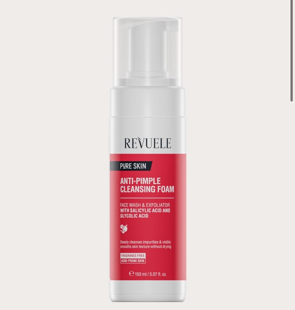 Revuele Anti-Pimple Cleansing Foam is an active face wash and exfoliator for oily and combination skin prone to acne.