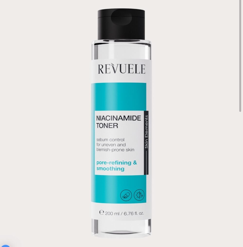 REVUELE NIACINAMIDE TONER helps balance out sebum production and de-clog pores for cleaner, fresher skin with smoother texture. It works to calm breakouts and even out the complexion. This vitamin-enriched rejuvenating toner will notably improve your skin’s look and feel.www.giftybeautystoree.com