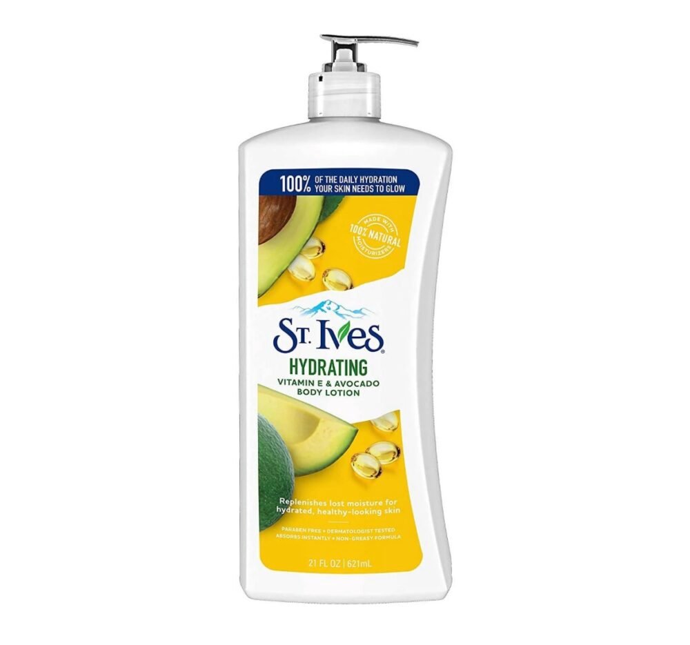 Best skincare store in Lagos The St. Ives Lotion Skin Hydrating Vitamin E & Avocado is  a non-greasy, fast-absorbing body lotion that defends against dryness to restore a healthy glow to the skin. It is made with 100% naturally sourced moisturizers and is suitable for all skin types. Best skincare store in Lagos